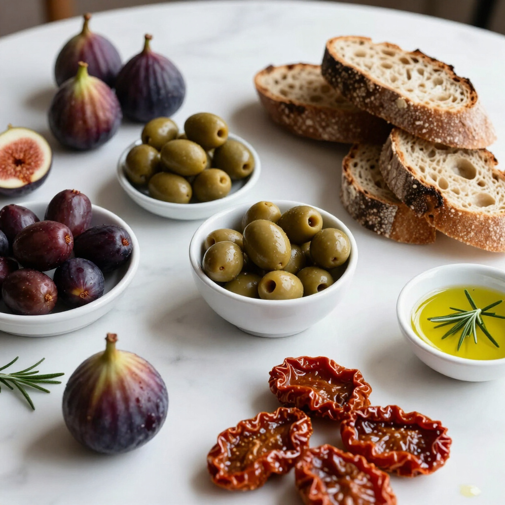 Ein luxuriöser Mix aus handverlesenen Käse, frischen Oliven und regionalen Spezialitäten, der das Aroma der Region in jedem Bissen widerspiegelt.